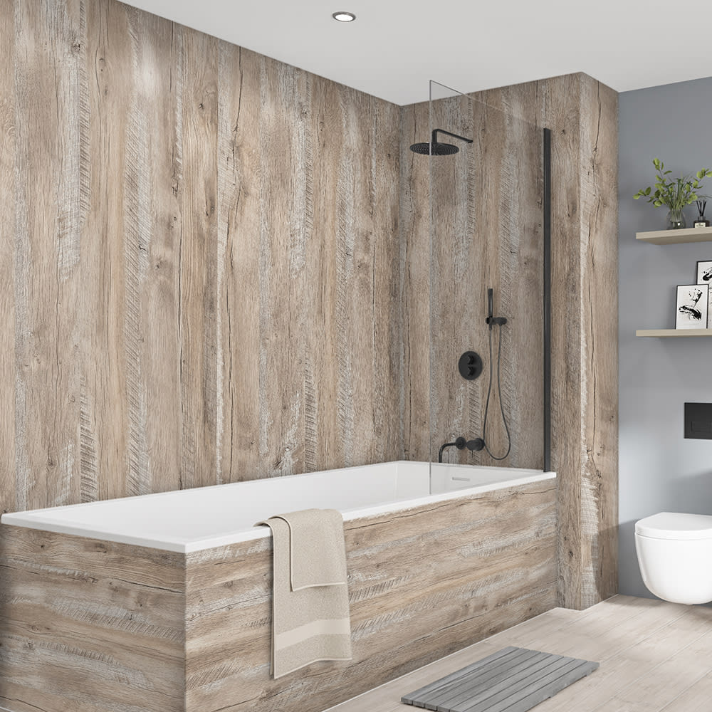 Wetwall Elite Rift Oak Post-Formed Finished Edge Single Shower Panel - 2420 x 1200 x 10mm