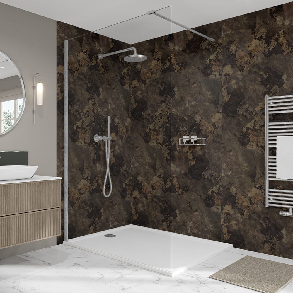 - Wetwall Elite Volcanic Stone 3 Sided Shower Panel Kit - 1700 x 900mm