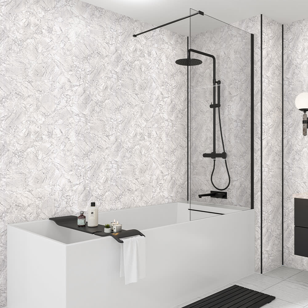- Wetwall Mermaid Bianco Marble Square Edge Single Shower Panel - 2400 x 1200 x 11mm