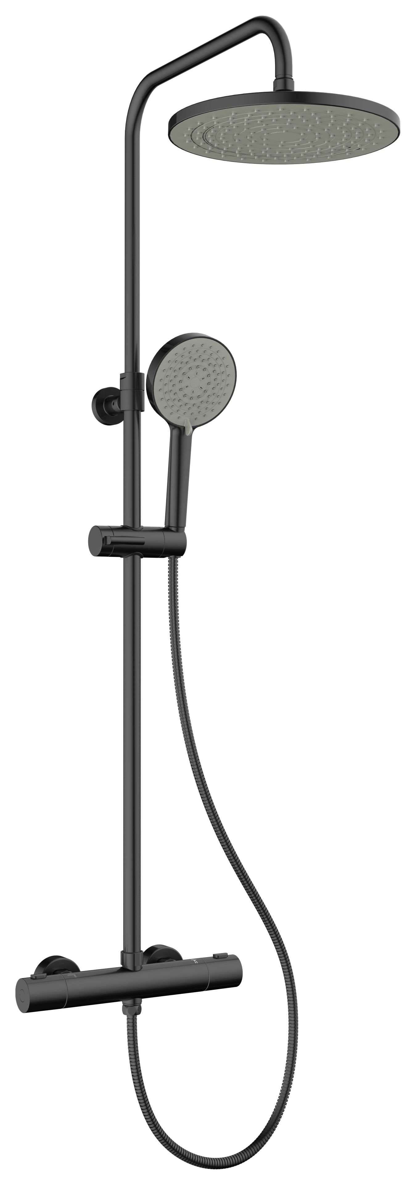The ultra-modern thermostatic shower mixer and diverter features a single-function fixed shower head and separate multi-function handset. This contemporary shower is sure to look great in any modern bathroom and the beautiful matt black colour adds a stylish finish to complete your bathroom refresh. This shower and diverter features seperate controls for water flow and temperature and an easy clean finish for your ease.