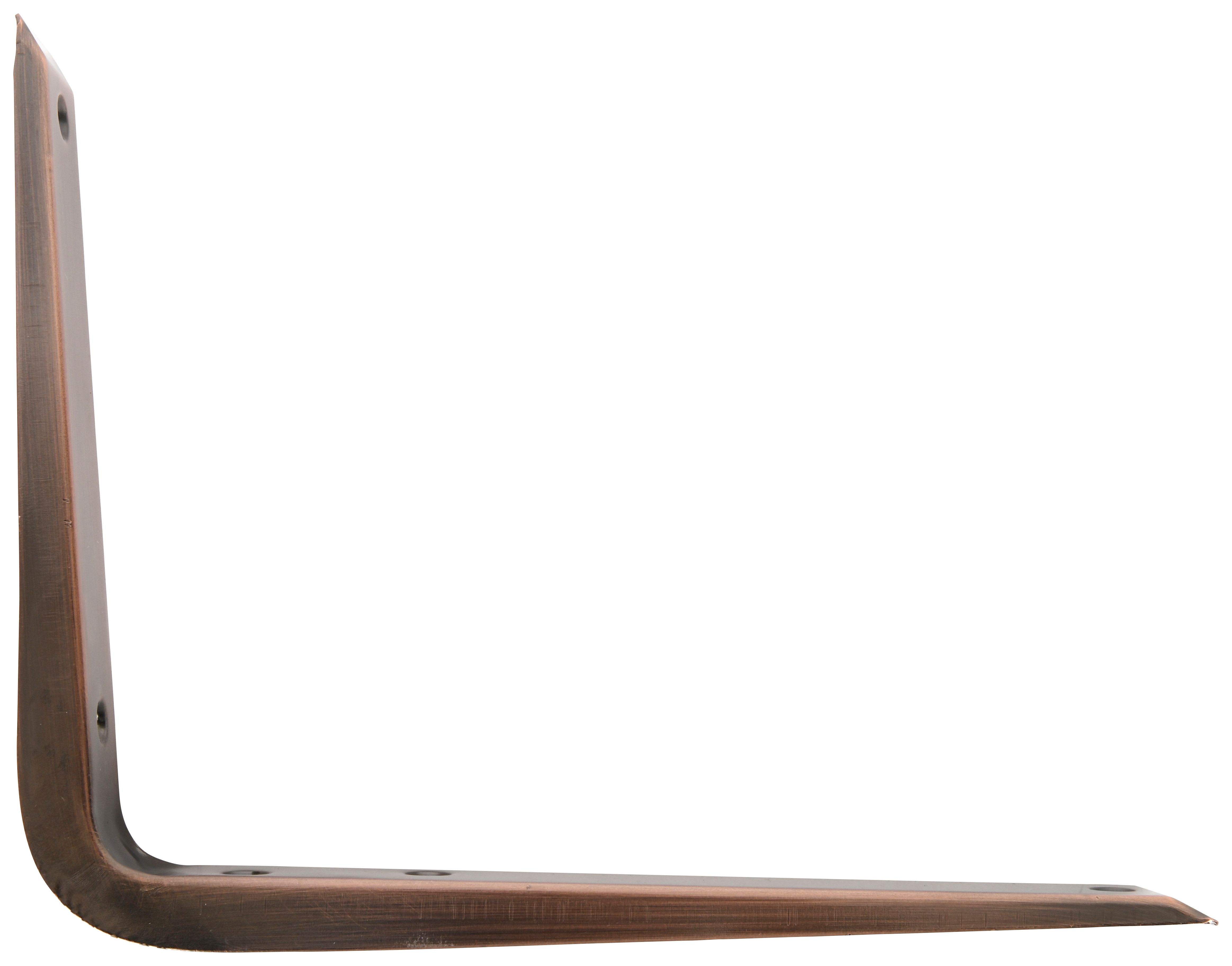 A contemporary shelving bracket in a decorative antique brass finish which is perfectly suited to any room in the house. Made from a single piece of steel, this strong load bearing shelving bracket has no welded joints. Featuring a tapered end and countersunk screw holes, the bracket can be used in 2 different orientations to fit your preferred design.