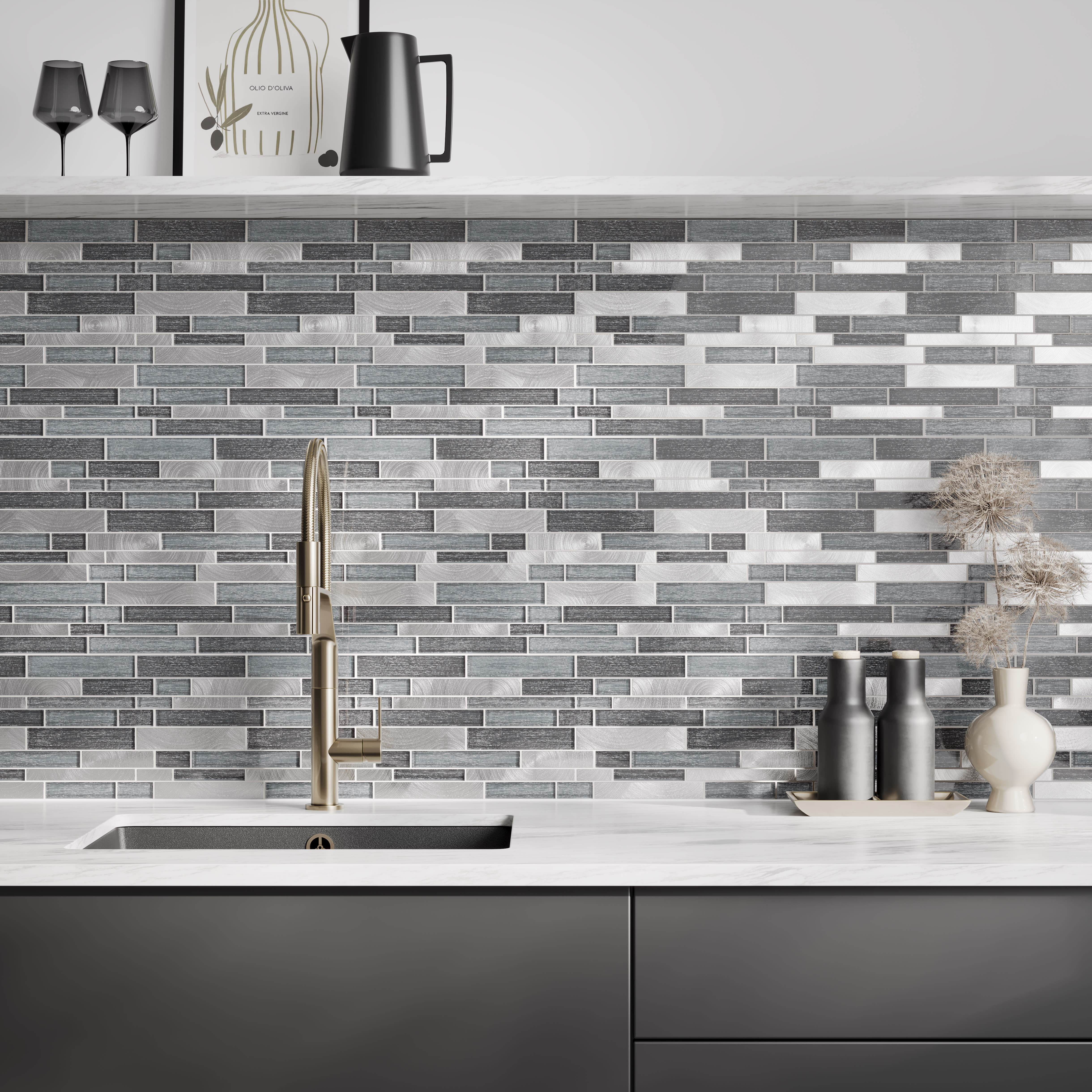 Wickes Ashby Offset Linear Grey Glass & Metal Mix Wall Mosaic Tile Sheet - 300 x 295mm