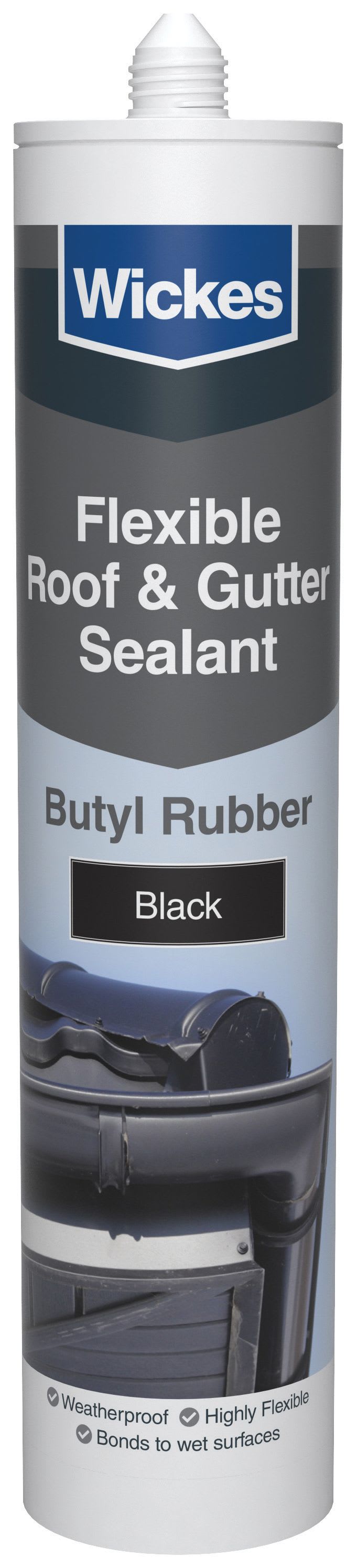 Wickes Roof & Gutter Sealant is suitable for sealing around guttering, pipes and flashing. It's ideal for emergency repairs and easy to apply, even in wet conditions.