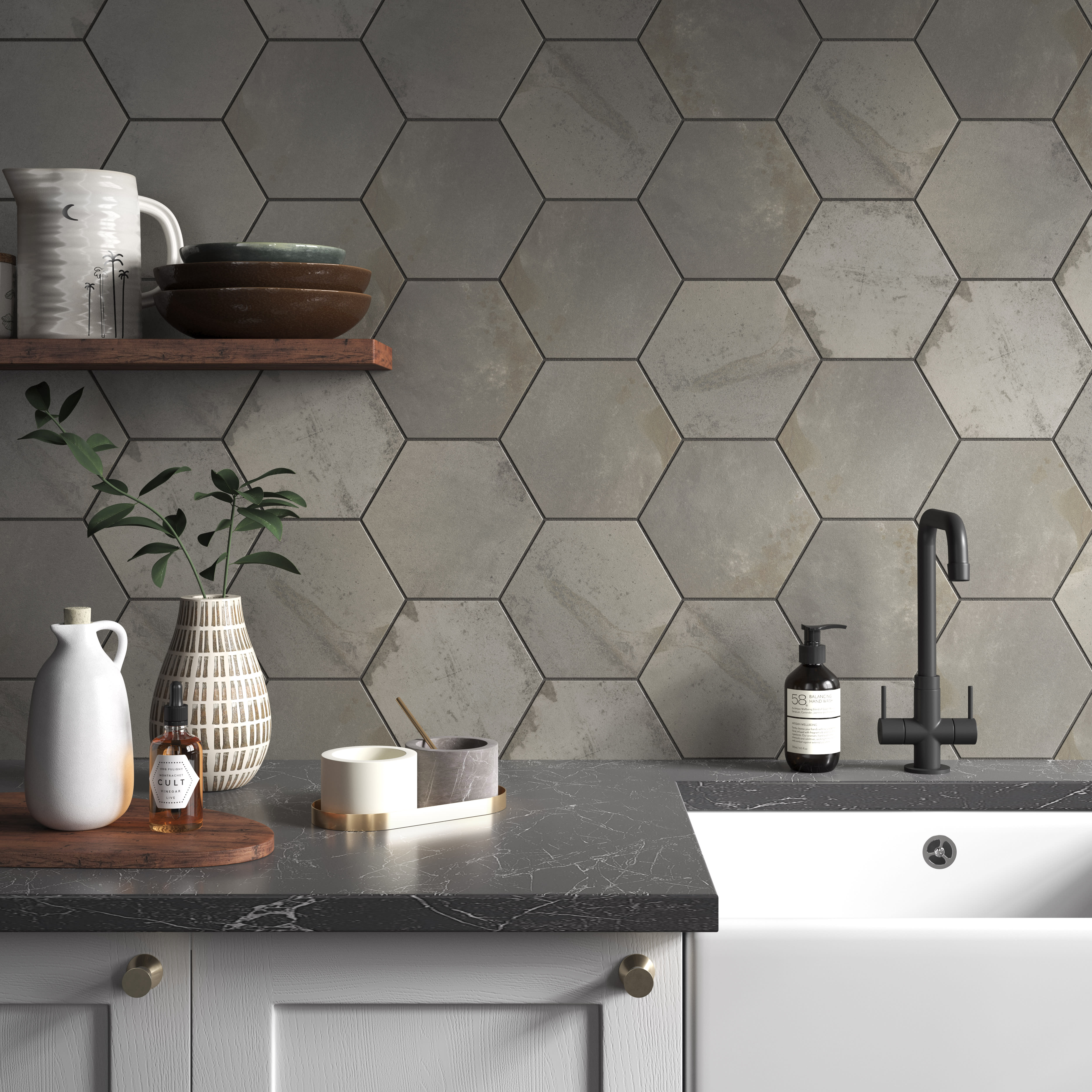 Wickes Boutique Hive Steel Matt Porcelain Wall & Floor Tile - 202 x 175mm
