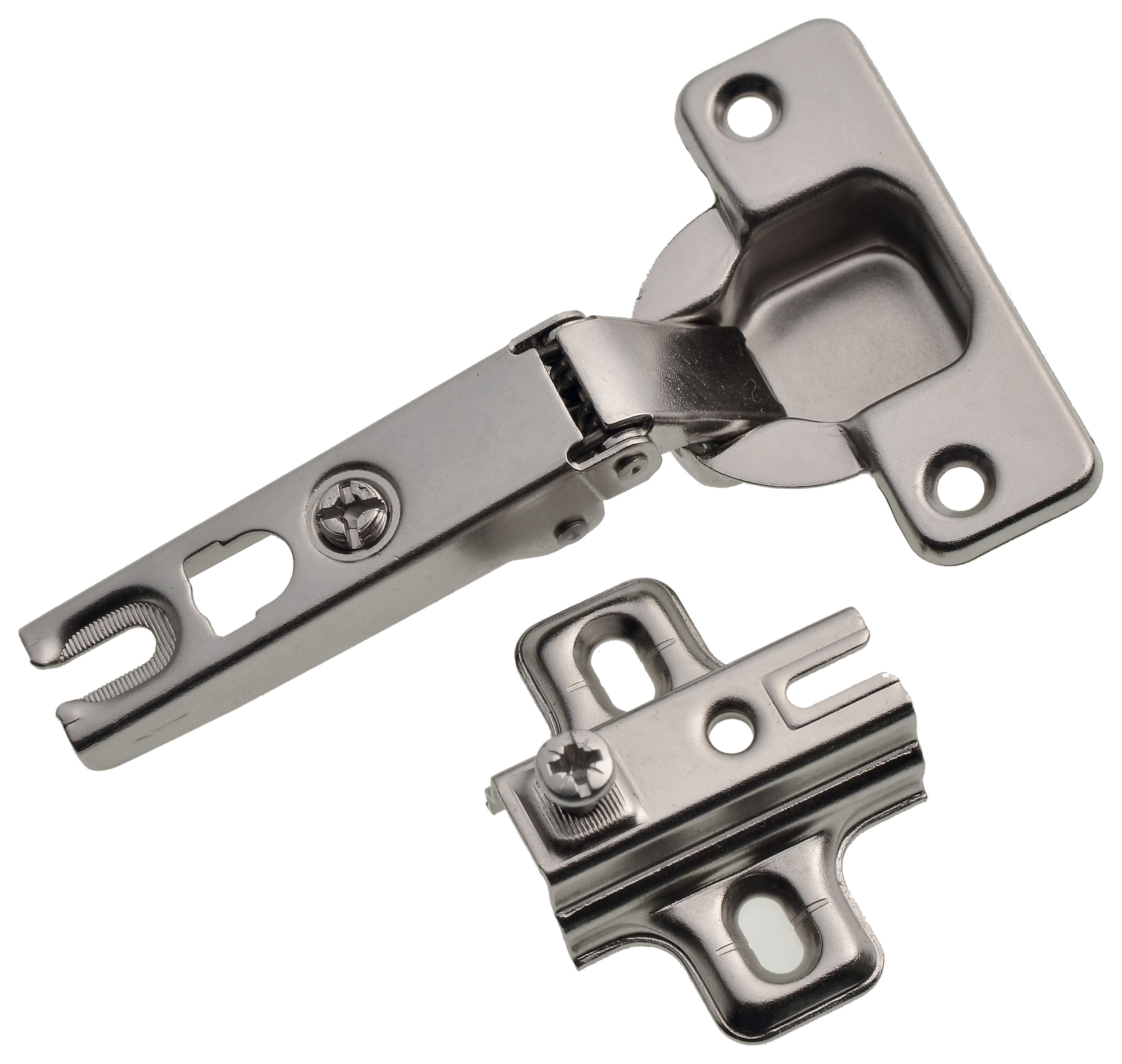 Easy to install cupboard door hinge for concealed fitting. This is slide on sprung hinge with 90 degree opening in high quality nickel plating. Comes as pack of 2.