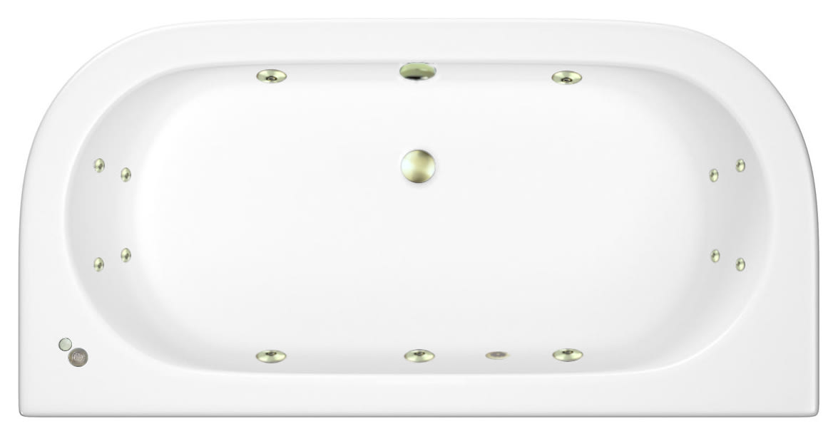 Wickes D-Shaped Blend 14 Brushed Brass Jet Light Whirlpool Bath - 1700 x 800mm