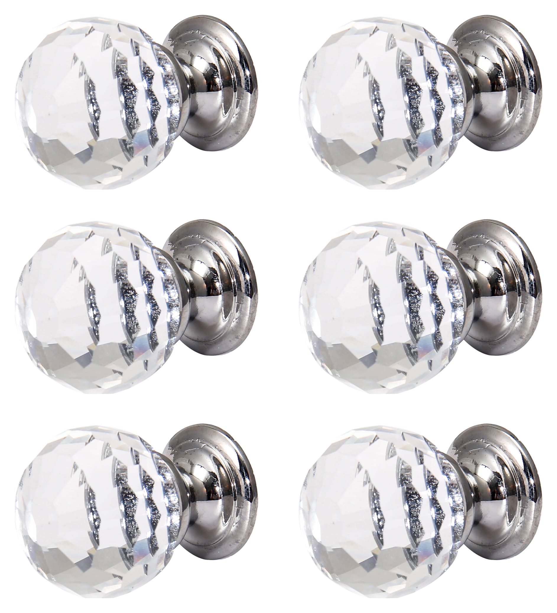 Wickes Glass Faceted Polished Chrome Cabinet Knob - 30mm - Pack of 18