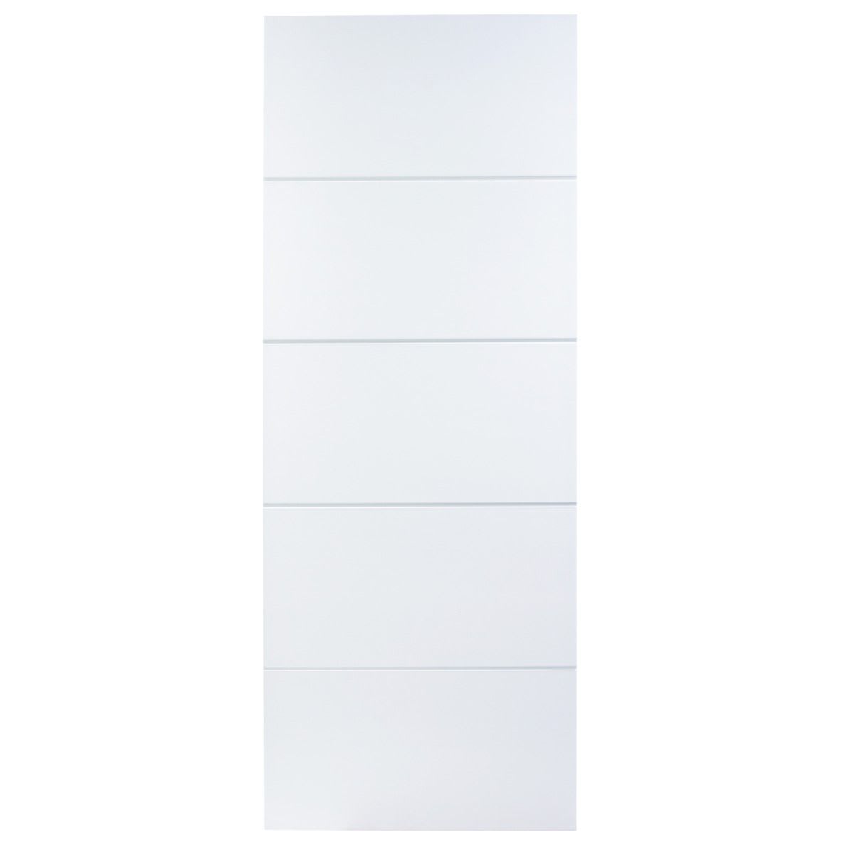 Wickes Halifax White Smooth Moulded Primed 5 Panel Internal Fire Door features a horizontal four-line panel door. Supplied primed and ready for a final coat of paint, allowing you to customise the finish to perfectly match your interior decor. Provides 30 minutes of fire resistance, offering essential protection and peace of mind.