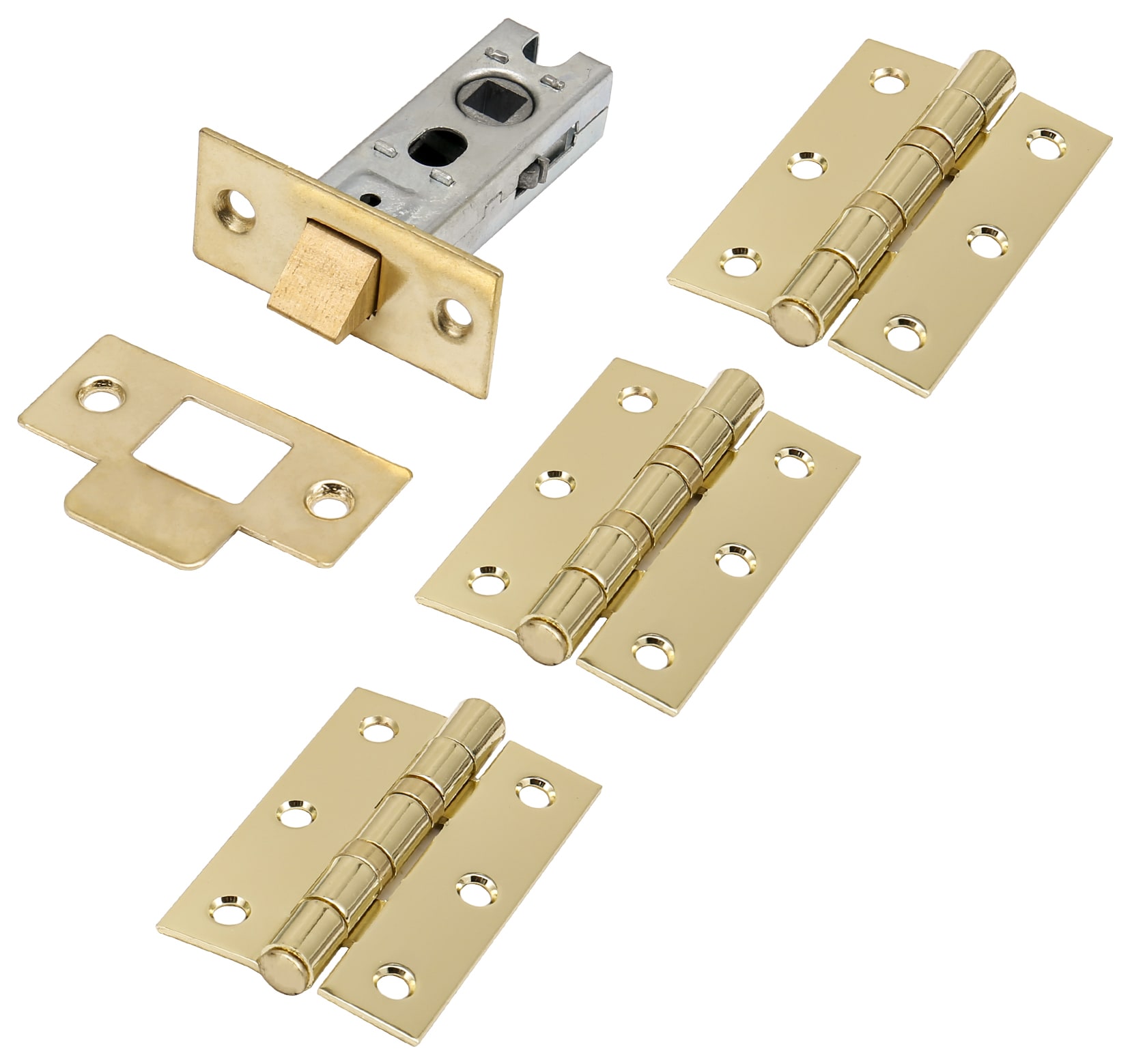 - Contents: 1 x 64mm brass tubular mortice latch and 3 x 75mm ball bearing hinges