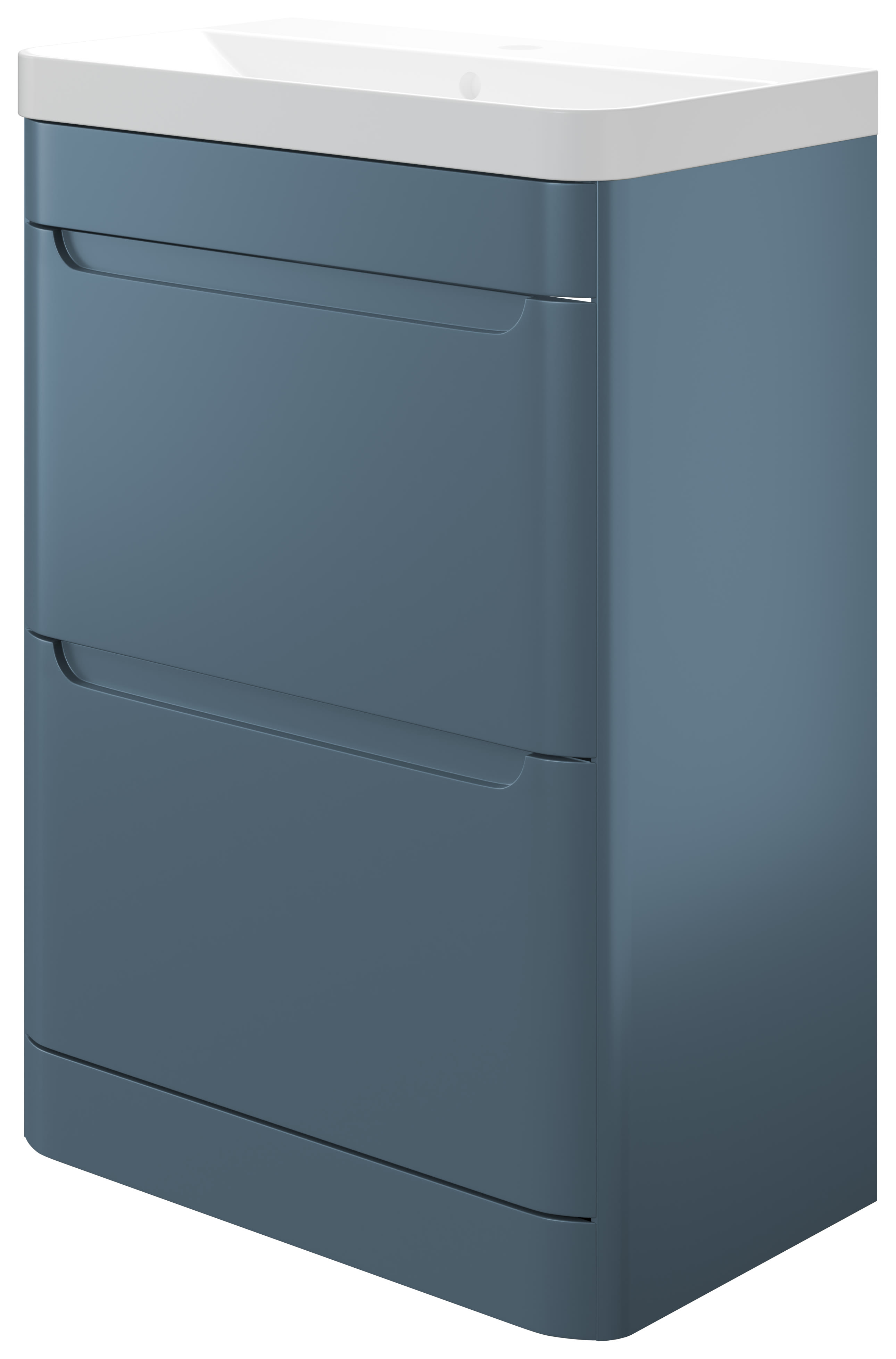 Wickes Malmo Misty Blue Freestanding J Pull Compact Vanity Unit & Basin - 600 x 350mm