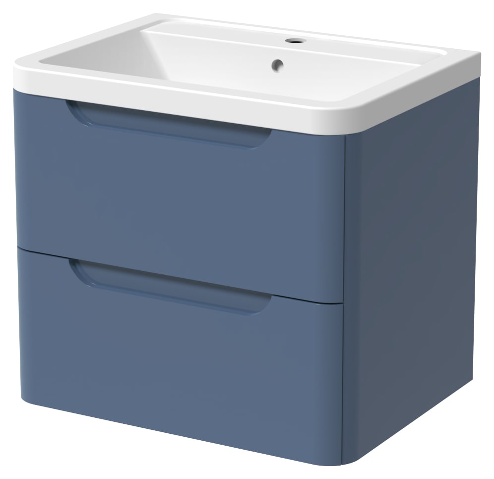 Wickes Malmo Misty Blue Wall Hung J Pull Vanity Unit & Basin - 600mm
