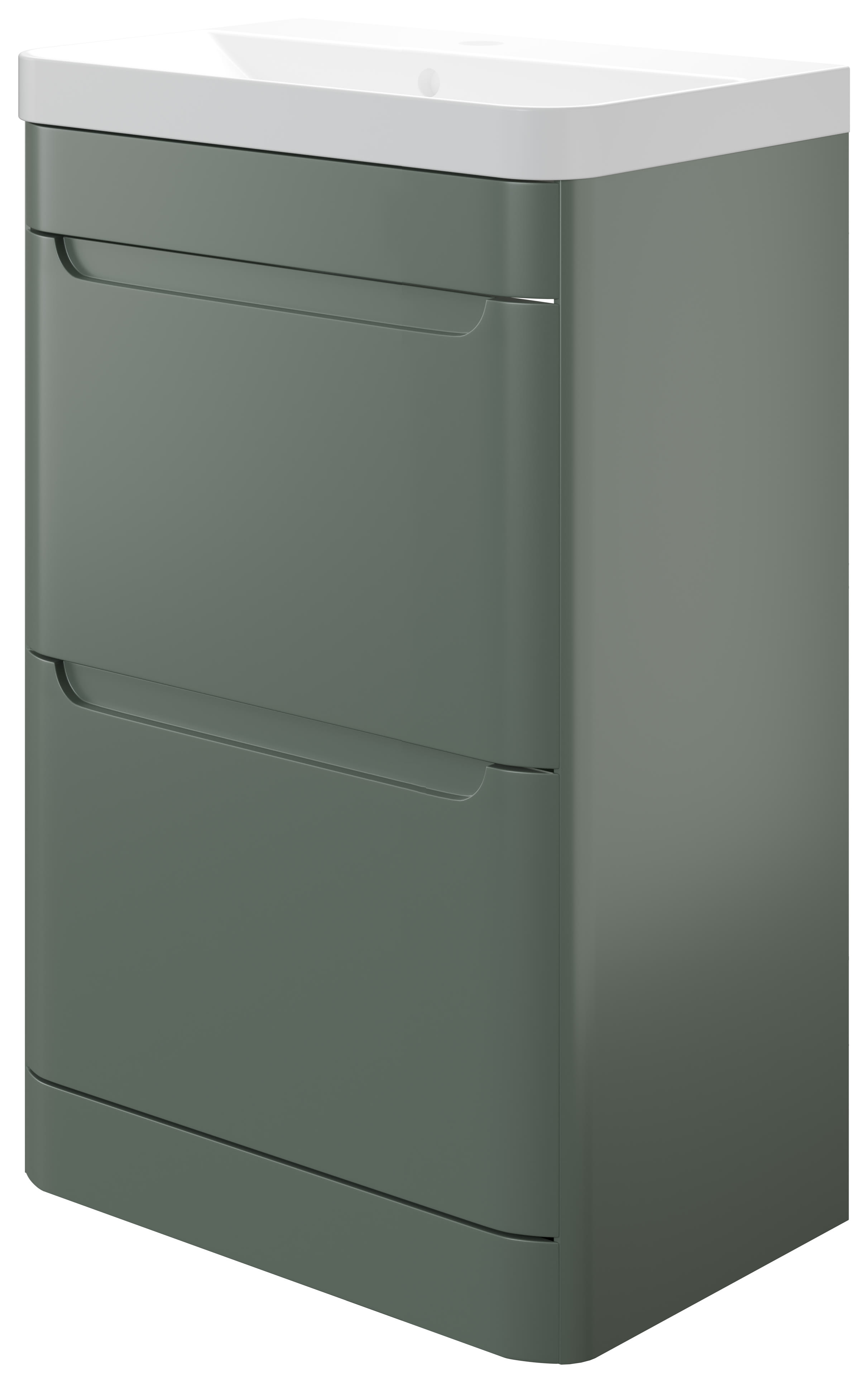Wickes Malmo Reed Green Freestanding J Pull Compact Vanity Unit & Basin - 500 x 350mm