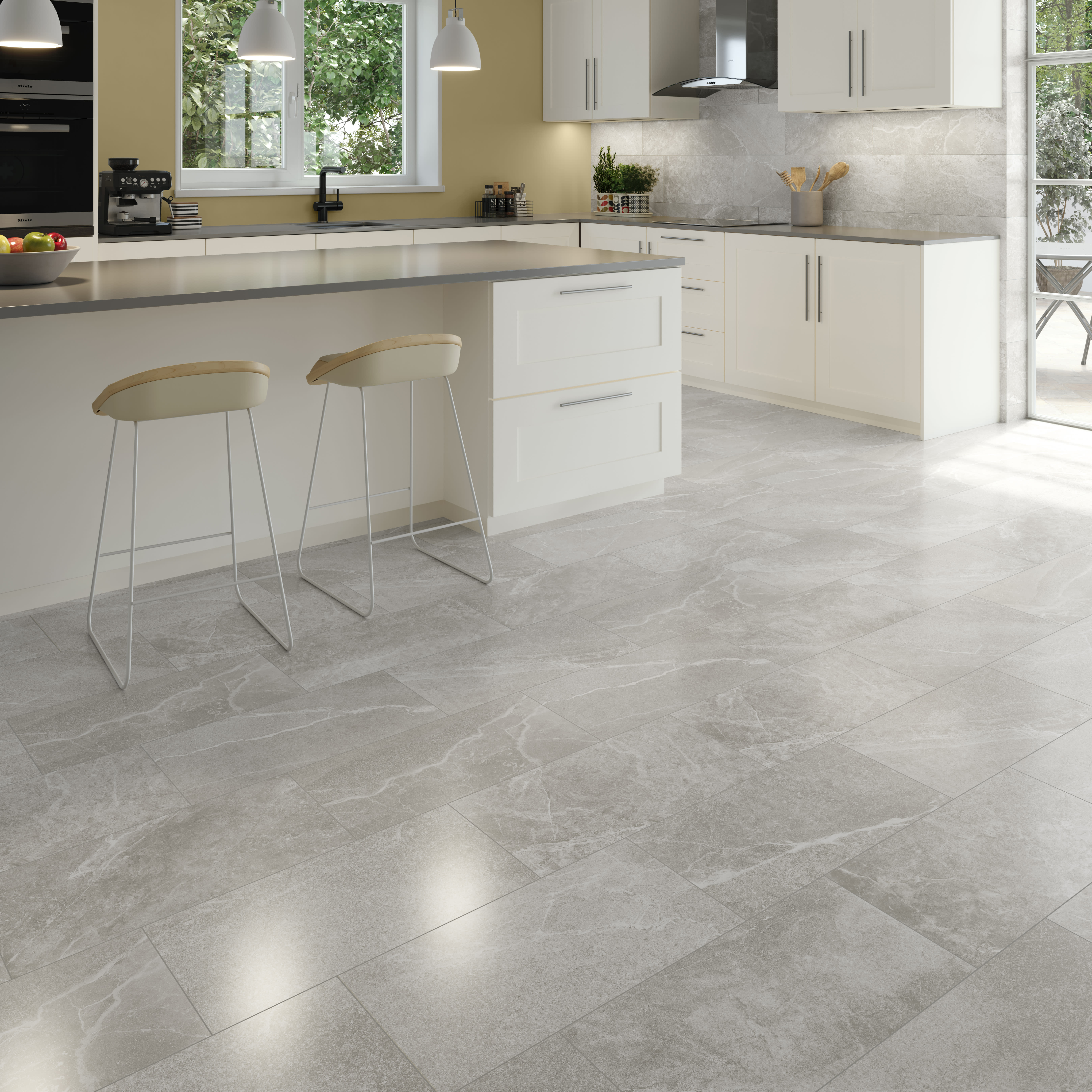 Wickes Mason Glazed Porcelain Wall & Floor Tile is a stunning grey tile that gives the look of a high end real marbled stone but with the practicalities of a glazed porcelain tile. Suitable for walls and floors, use it to add a touch of grandeur to a simple kitchen or to create a statement in your bathroom.