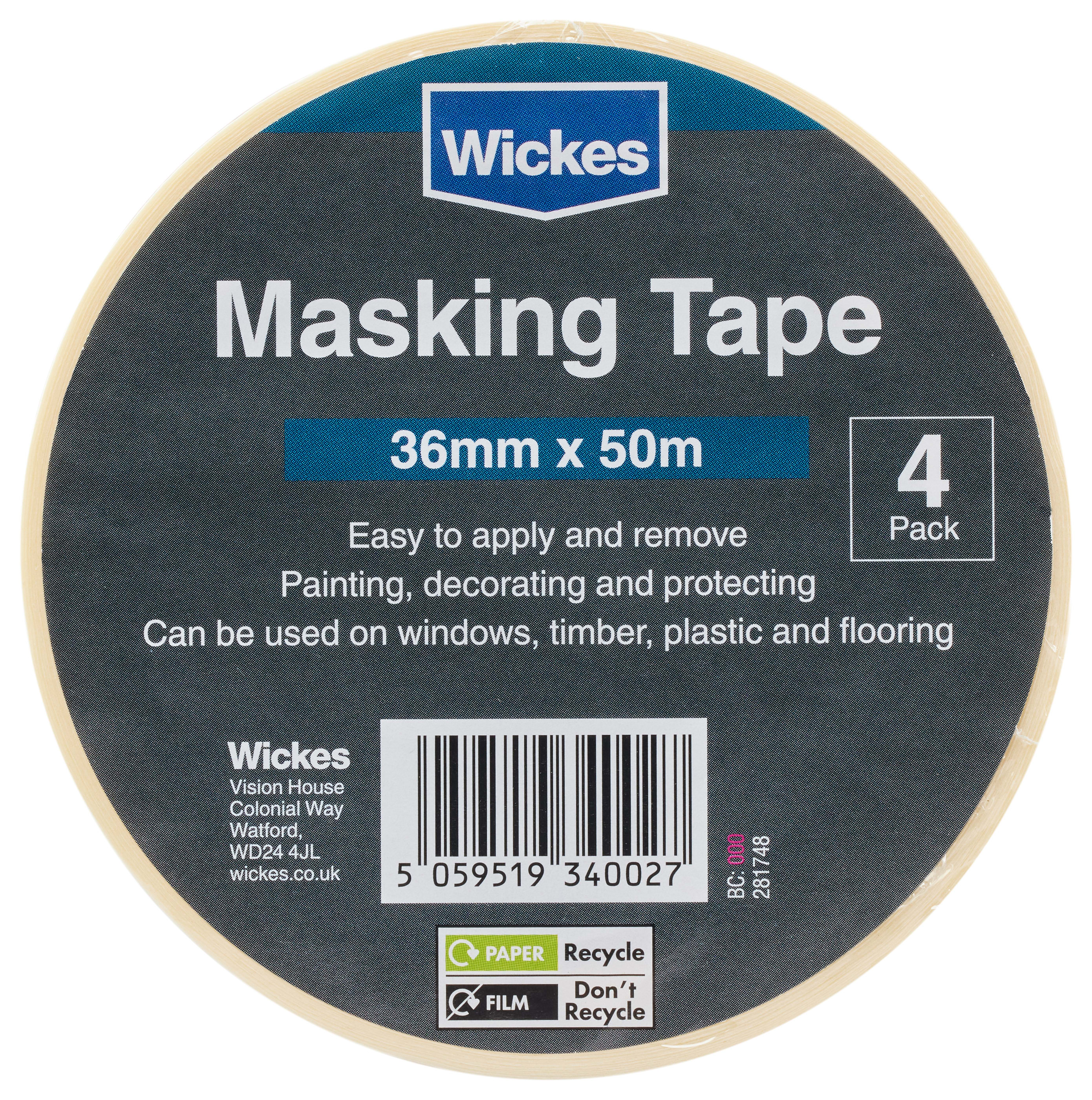 Wickes Multi-Surface Cream Masking Tape - 36mm x 50m - Pack of 4