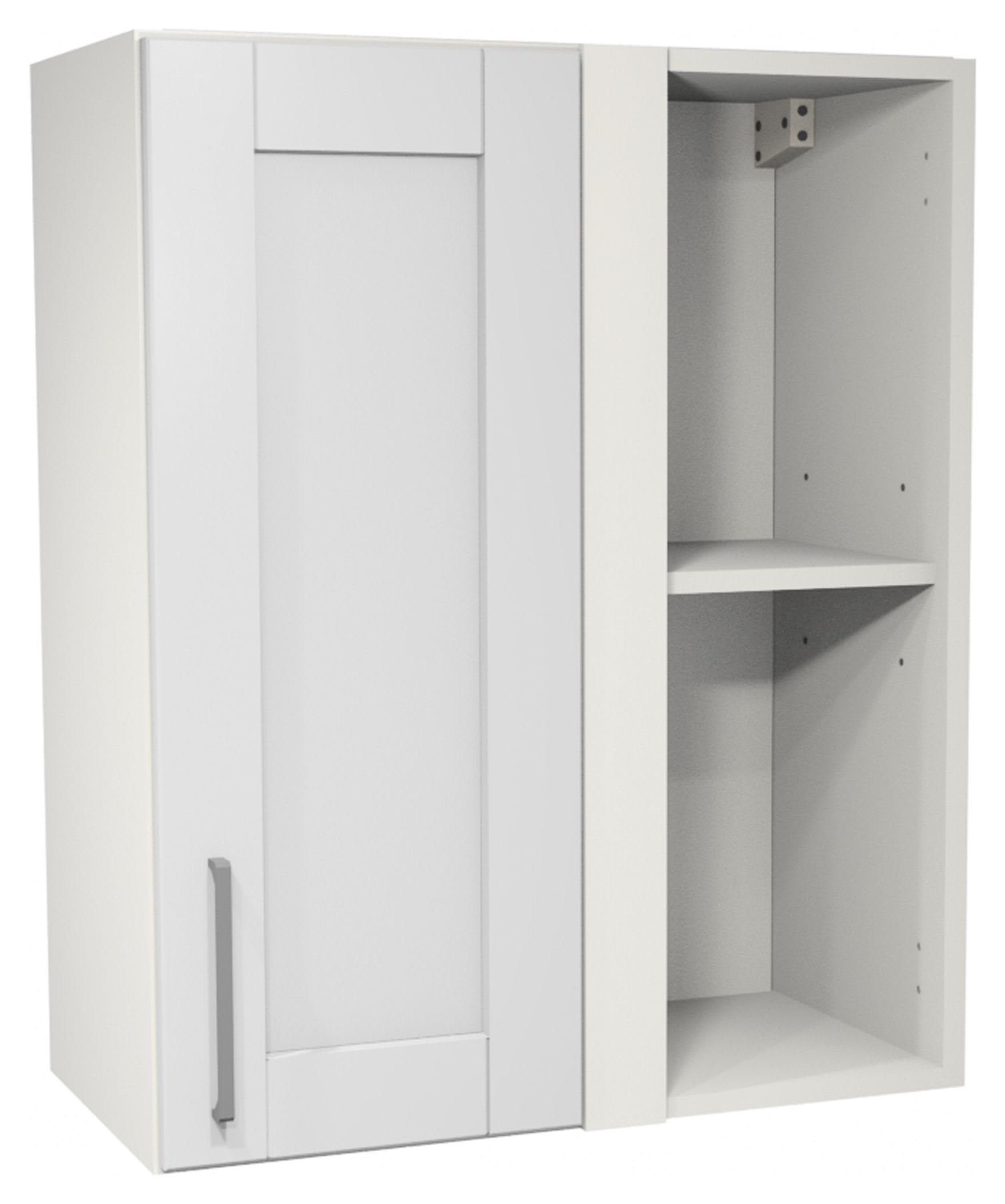 Wickes Ohio Grey Shaker Corner Wall Unit provides a stylish and practical storage solution for any kitchen, with a classic shaker design and modern grey finish. This unit is supplied with all of the fixtures and fittings required for a straight forward installation. Our 'Wickes Lifestyle Kitchens' range of flat-pack kitchens are available for you to assemble and fit whenever suits you.
