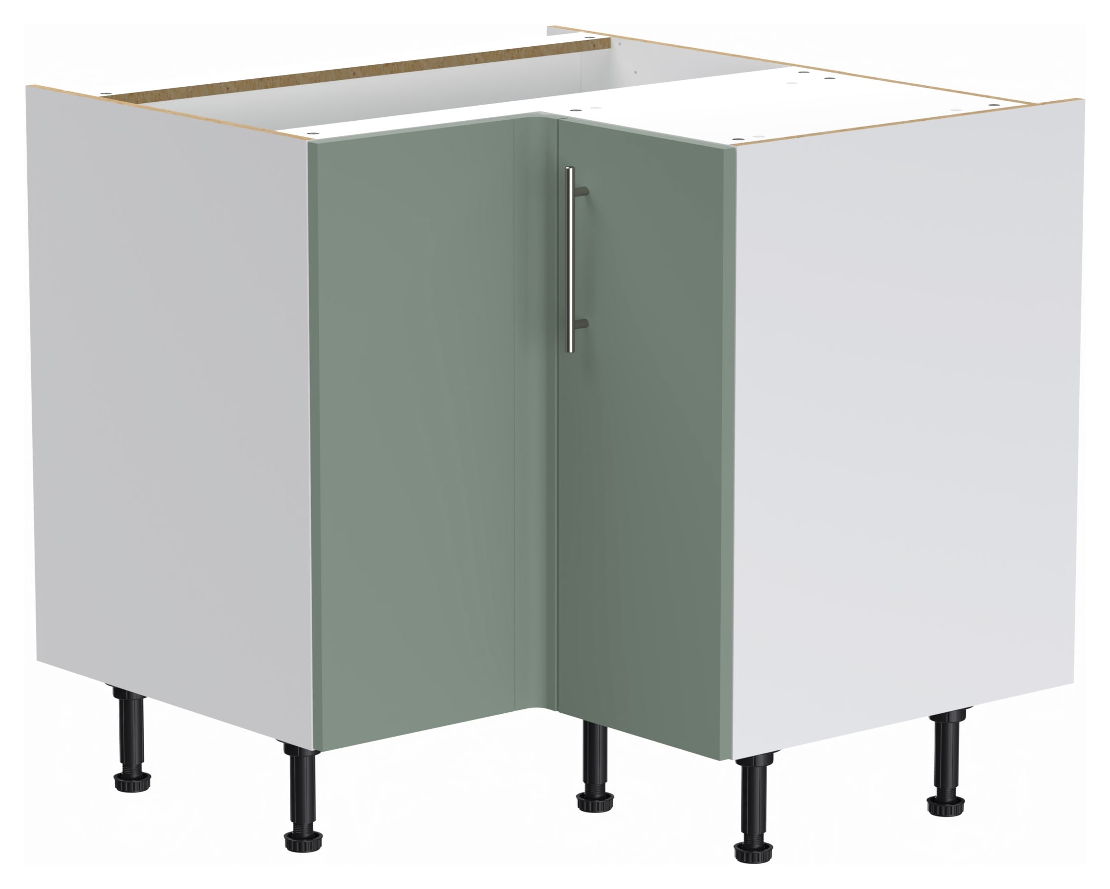 Wickes Orlando Reed Green Corner Base Unit combines style and practicality with its reed green finish, making it an ideal choice for modern kitchens. This unit comes supplied with all fixtures and fittings and adjustable legs for uneven floor surfaces. Our 'Wickes Lifestyle Kitchens' range of flat-pack kitchens are available for you to assemble and fit whenever suits you.