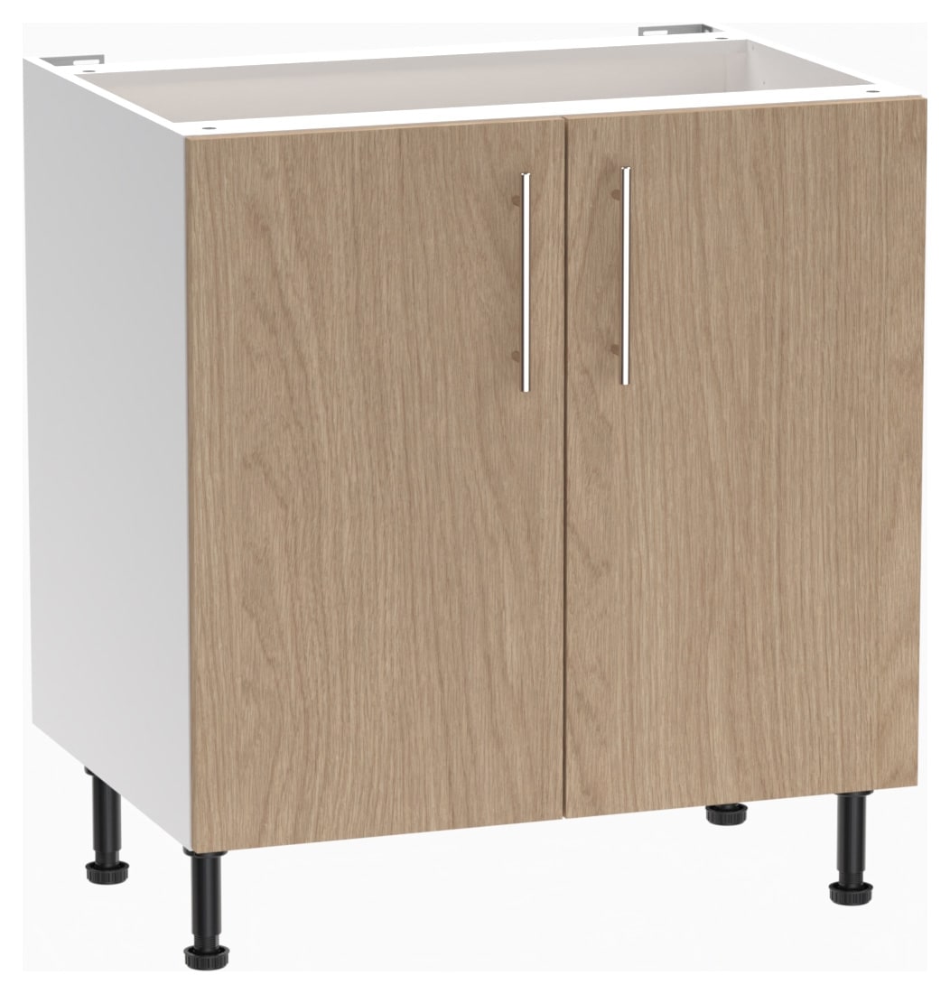 - Includes: 1x 800mm base cabinet with fixtures, hinges and instructions, 2x 400mm Door and 2x Orlando handle