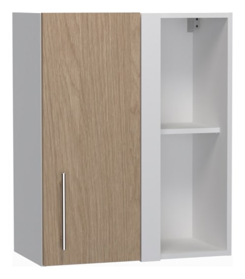 - Includes: 1x 600mm corner wall cabinet with fixtures, hinges and instructions, 1x 300mm door and 1x Orlando handle