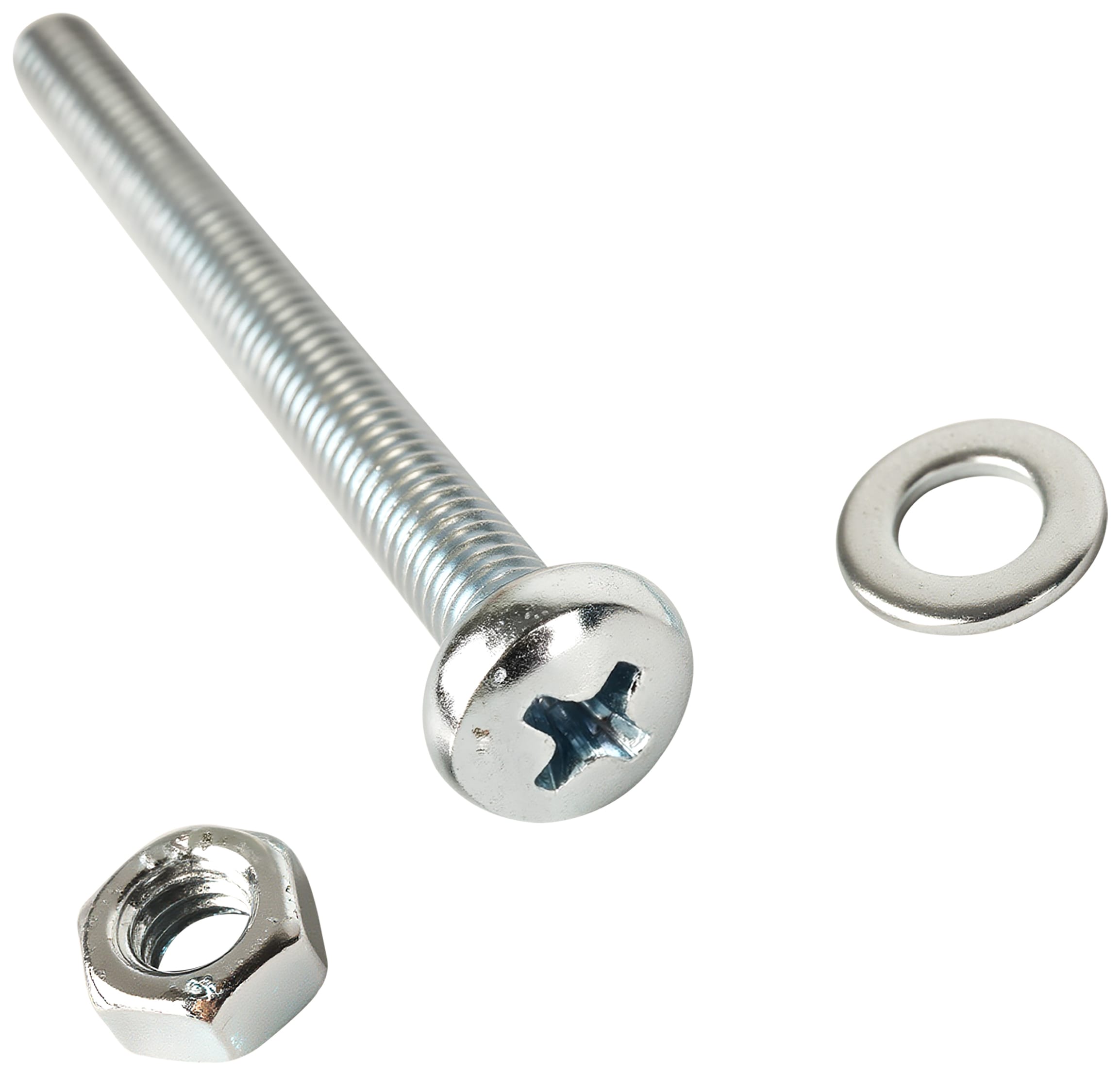 Wickes Pan Head Machine Screws are used for for all electrical, plumbing and DIY applications. They're designed for use with nuts, and the screw head has a flat underside, so it lays flat on sheet material of all types. This helps to reduce deformation and will help you to achieve a neat finish in permanent applications. The Phillips pan head means that you can drill with higher torques without the risk of cam-outs.