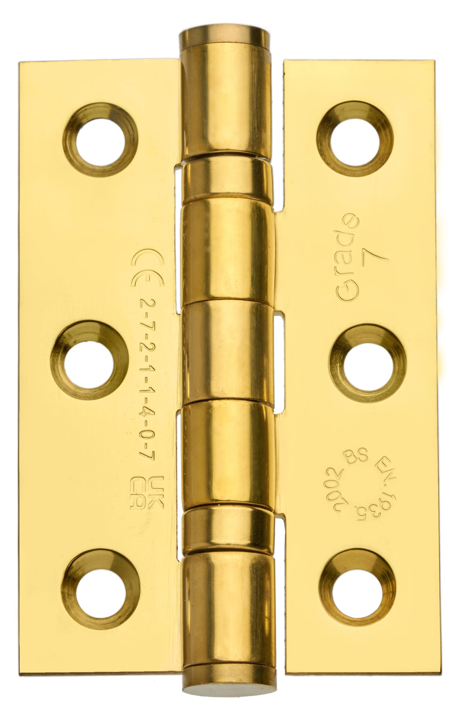 Wickes Polished Brass Grade 7 Fire Rated Ball Bearing Hinge - 76mm - Pack of 3