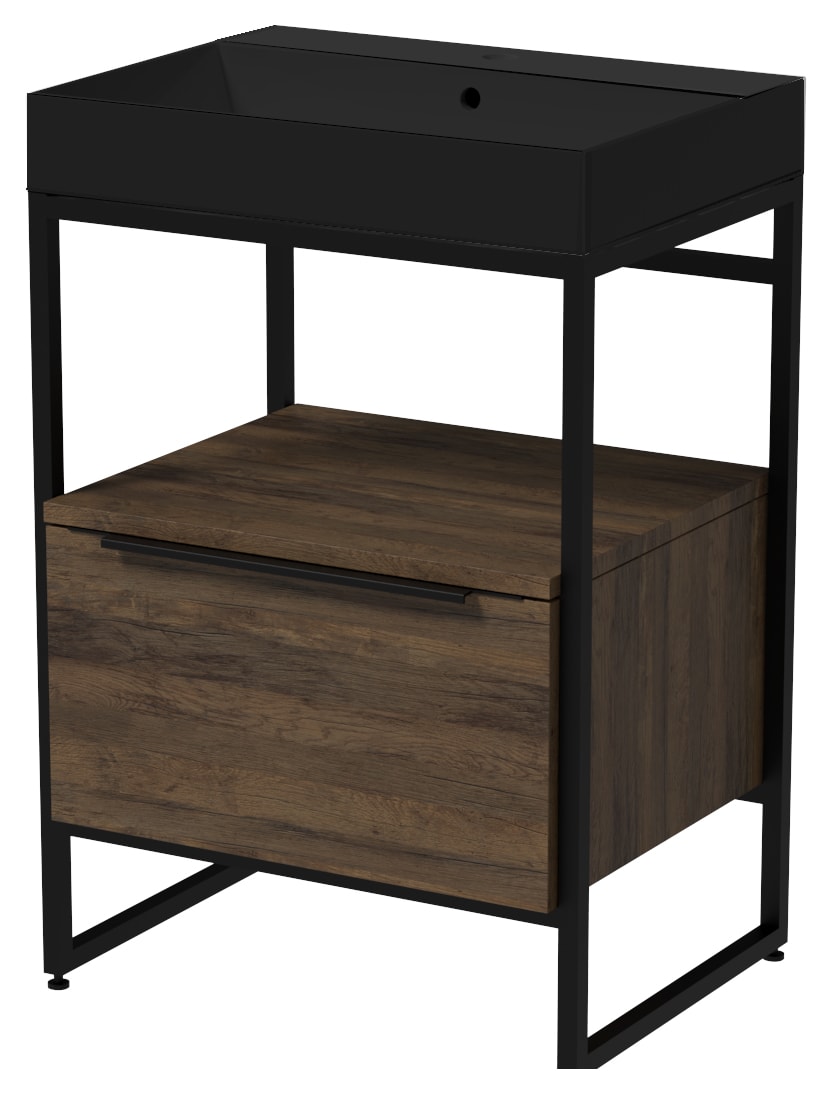 Wickes Rimini Grey Oak Black Frame Freestanding Vanity Unit & Black Basin - 850 x 600mm