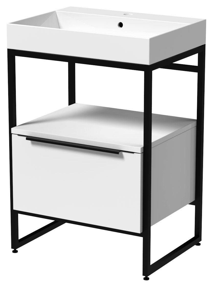 Wickes Rimini Matt White Black Frame Freestanding Vanity Unit & Basin - 850 x 600mm