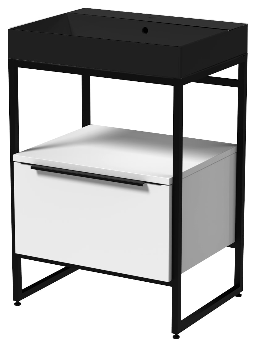 Wickes Rimini Matt White Black Frame Freestanding Vanity Unit & Black Basin - 850 x 600mm