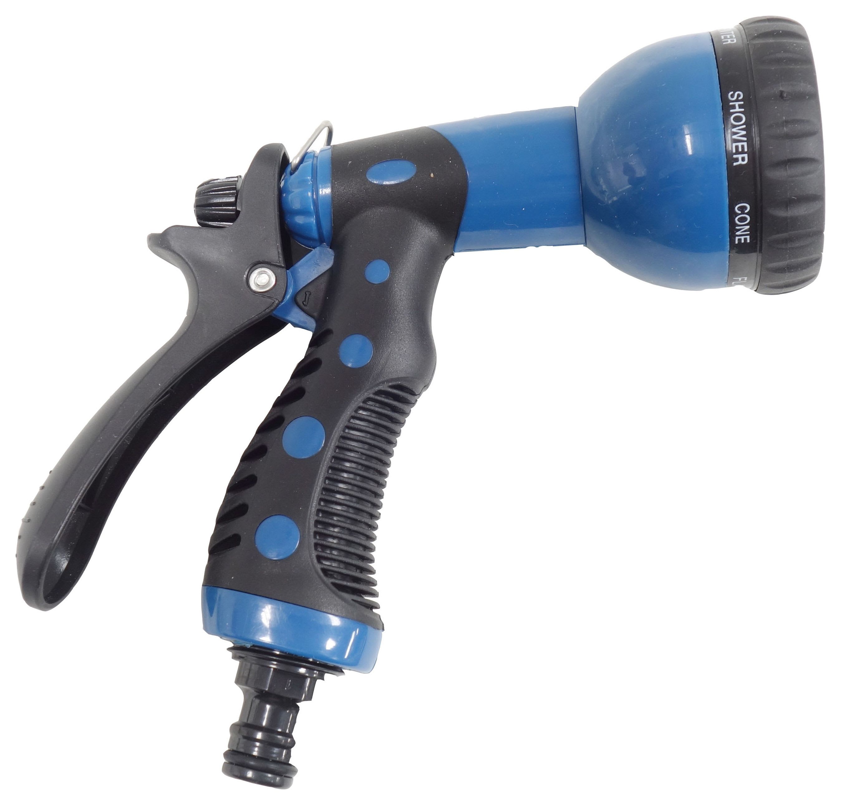 This Round Head Water Sprayer suits a variety of gardening needs with 8 different watering patterns. It features a comfortable rear trigger control with trigger lock, soft comfort grip and flow control.