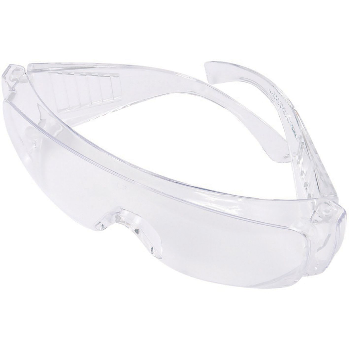 Made from clear polycarbonate. Impact and abrasion resistant, these safety glasses are ideal for DIY projects. Designed to fit over most prescription glasses.