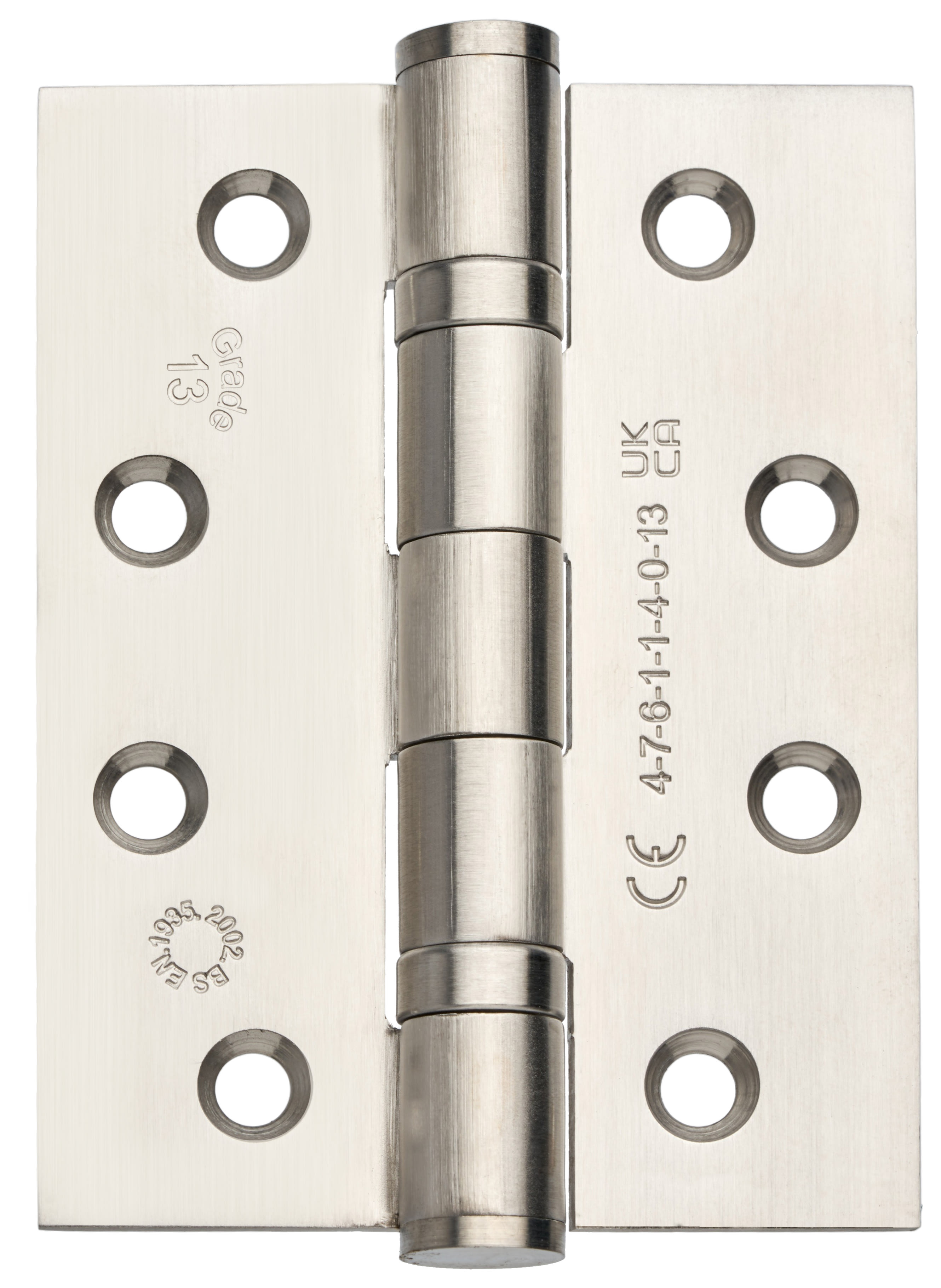 Wickes Satin Steel Grade 13 Fire Rated Ball Bearing Hinge - 102mm - Pack of 3