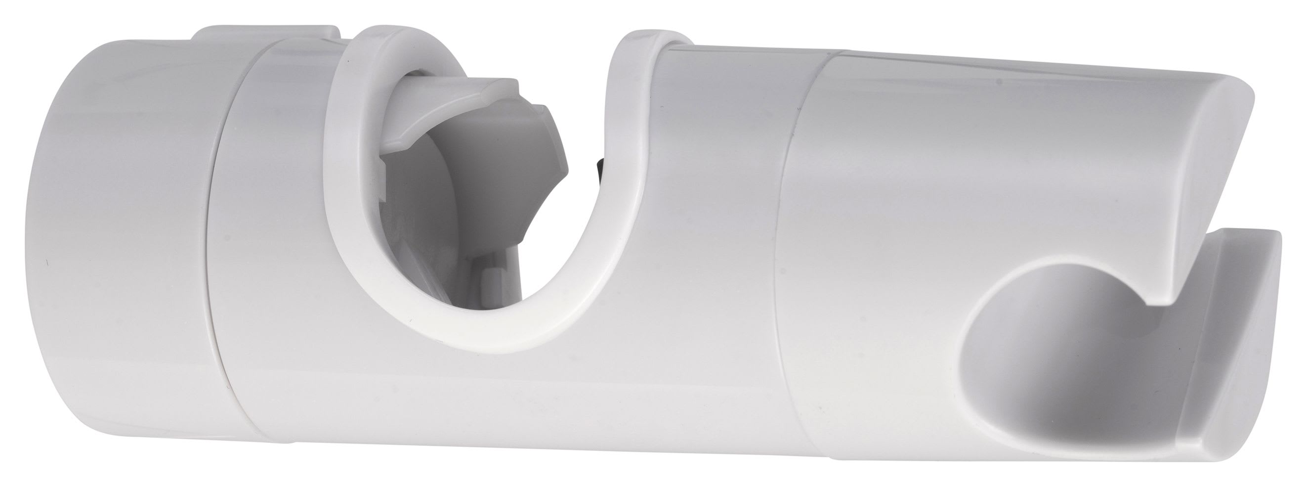Easy retro fit replacement Shower Riser White Rail Slider. Simply push the button on the side to adjust the height position of your hose/shower handset. This riser rail slider holds your shower handset securely in place on the slider rail. Made of durable ABS plastic.