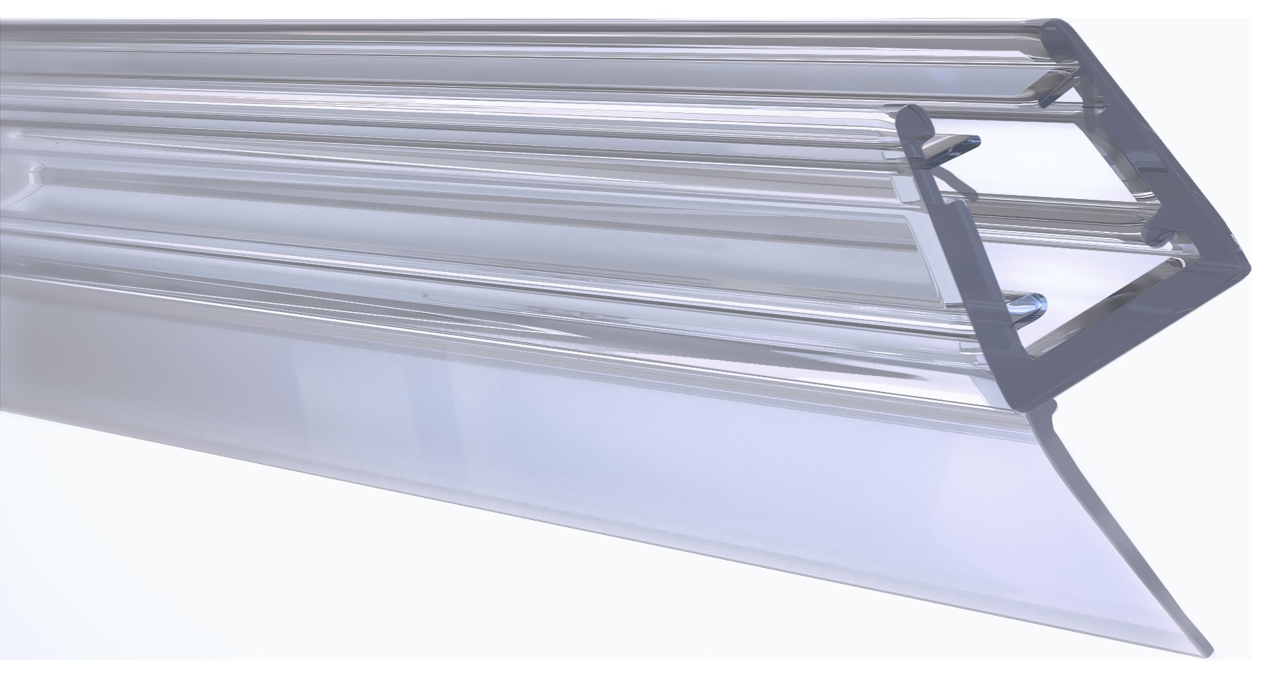 A transparent shower screen seal designed for the side of shower enclosures to prevent water leakage. It's suitable for use with most 5 - 6mm shower enclosures and is easy to fit, no tools, sealant or glue required.