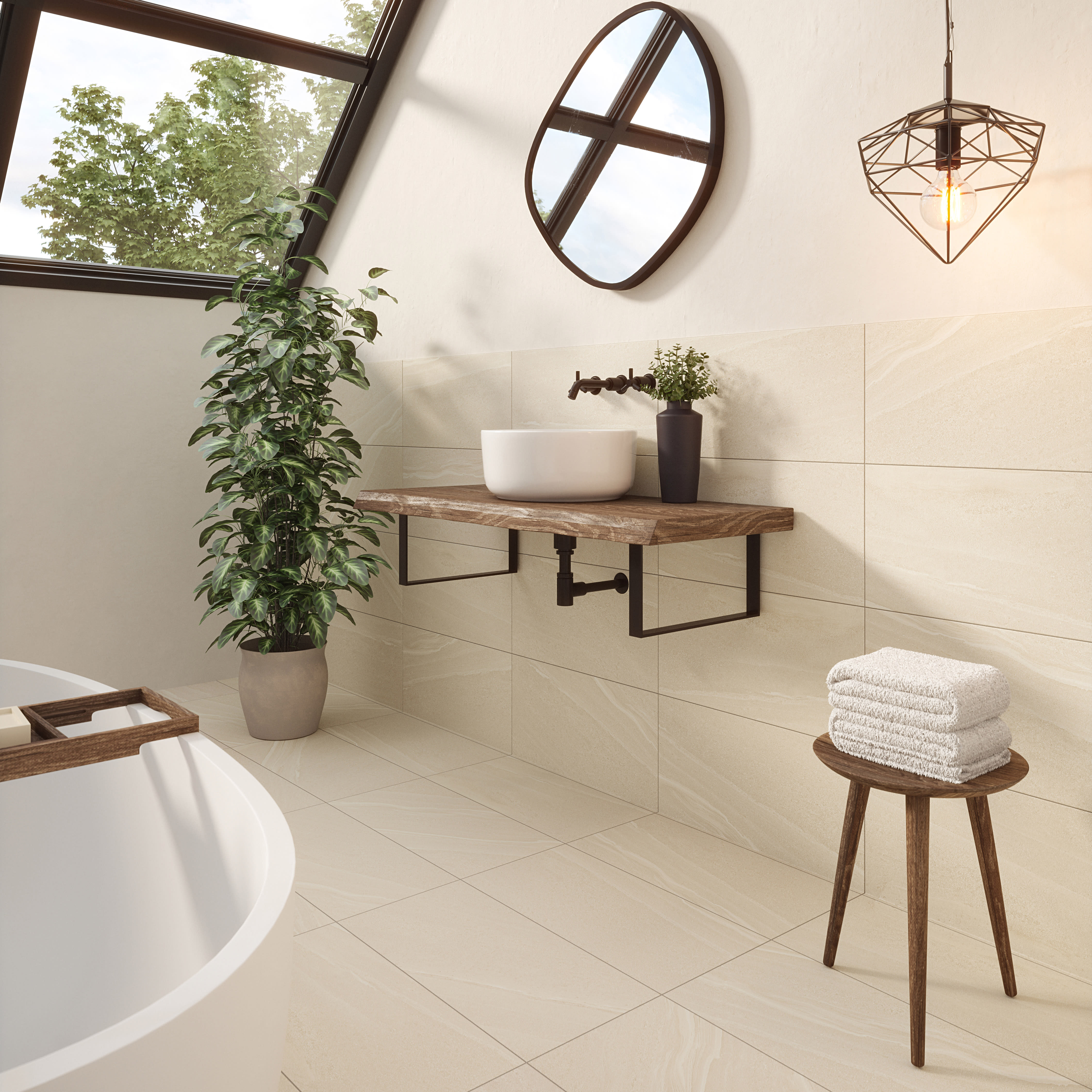 - Stunning porcelain tile in an on-trend neutral sand colourway