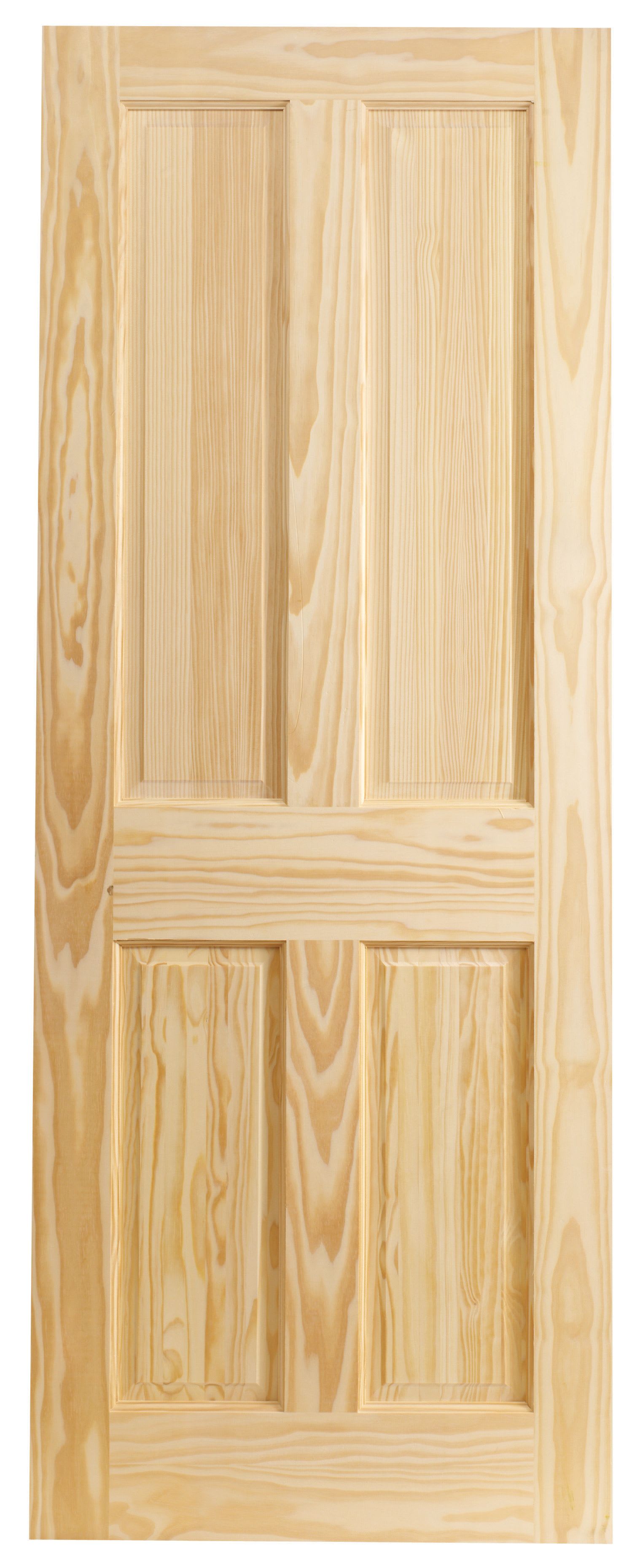 - Wide mid-rail and stiles add to the overall appearance of this traditional clear pine four-panel fire door