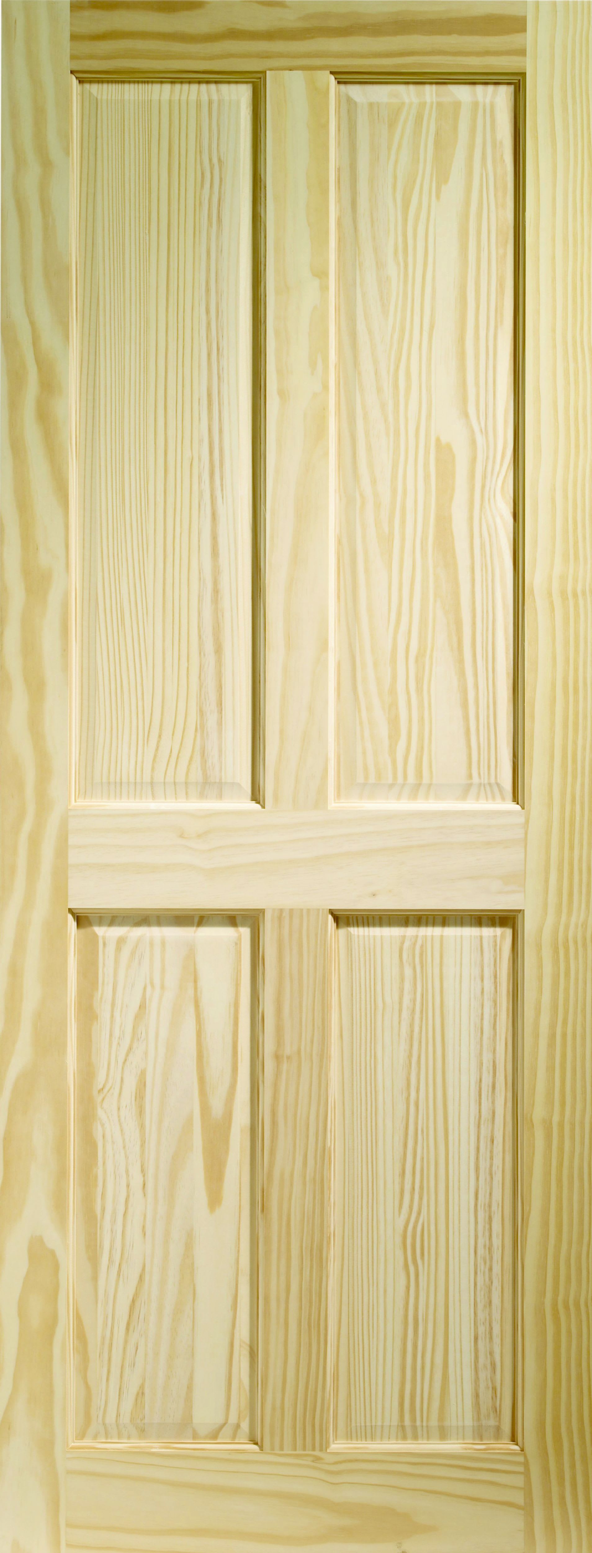 - Wide mid-rail and stiles add to the overall appearance of this traditional clear pine four-panel fire door