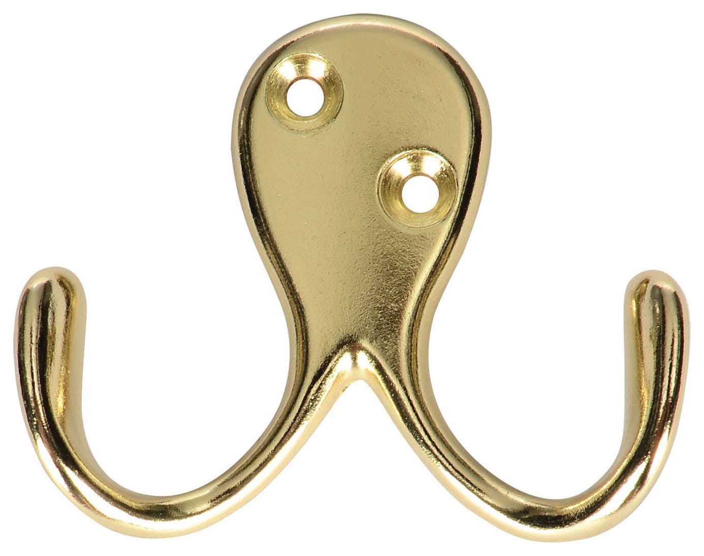 The Wickes Two Prong Screwed Hook is a stylish and versatile addition to any home, perfect for use in the kitchen, bathroom, or bedroom. With its two prongs, this hook allows for efficient organisation by providing space to hang a coat on one side and a hat on the other. The elegant brass finish adds a touch of sophistication to your decor, while the rounded prongs enhance safety by reducing the risk of snagging.
