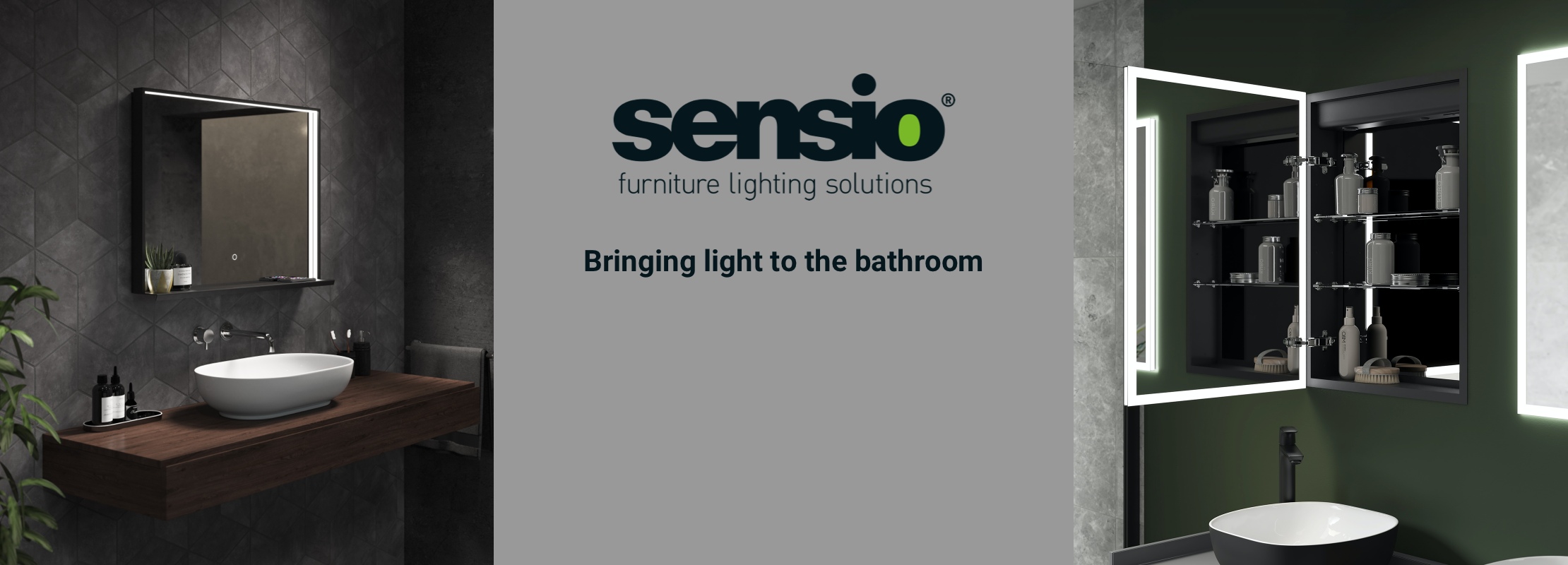 Simply activated by a swipe of the hand. Advanced features in some mirrors and cabinets, such as dimming and colour control, are operated by hovering the hand near the sensor.
