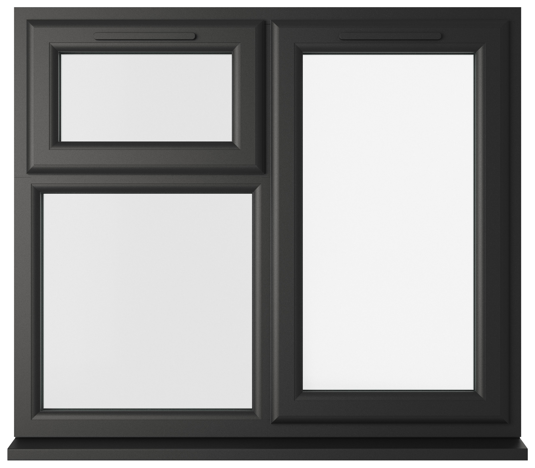 Crystal uPVC Black Right Hand Side Hung Next to a Top Opener Over a Fixed Light Clear Double Glazed Window - 1190 x 1115mm