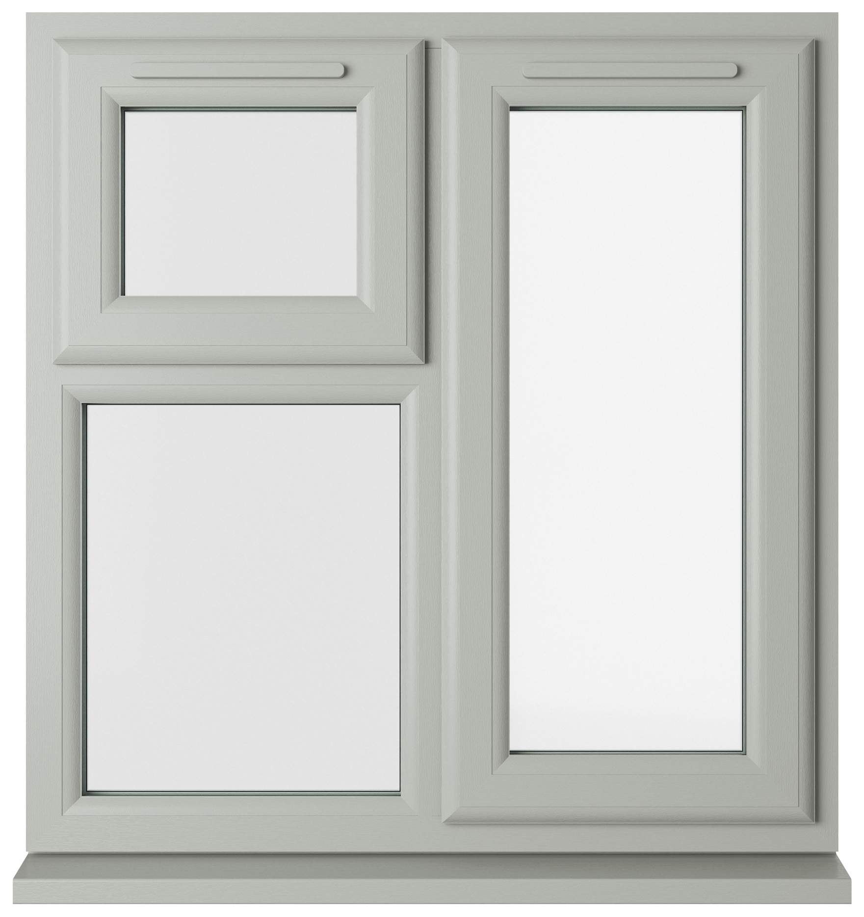 Crystal uPVC Agate Grey Right Hand Side Hung Next to a Top Opener Over a Fixed Light Clear Double Glazed Window - 1190 x 1115mm
