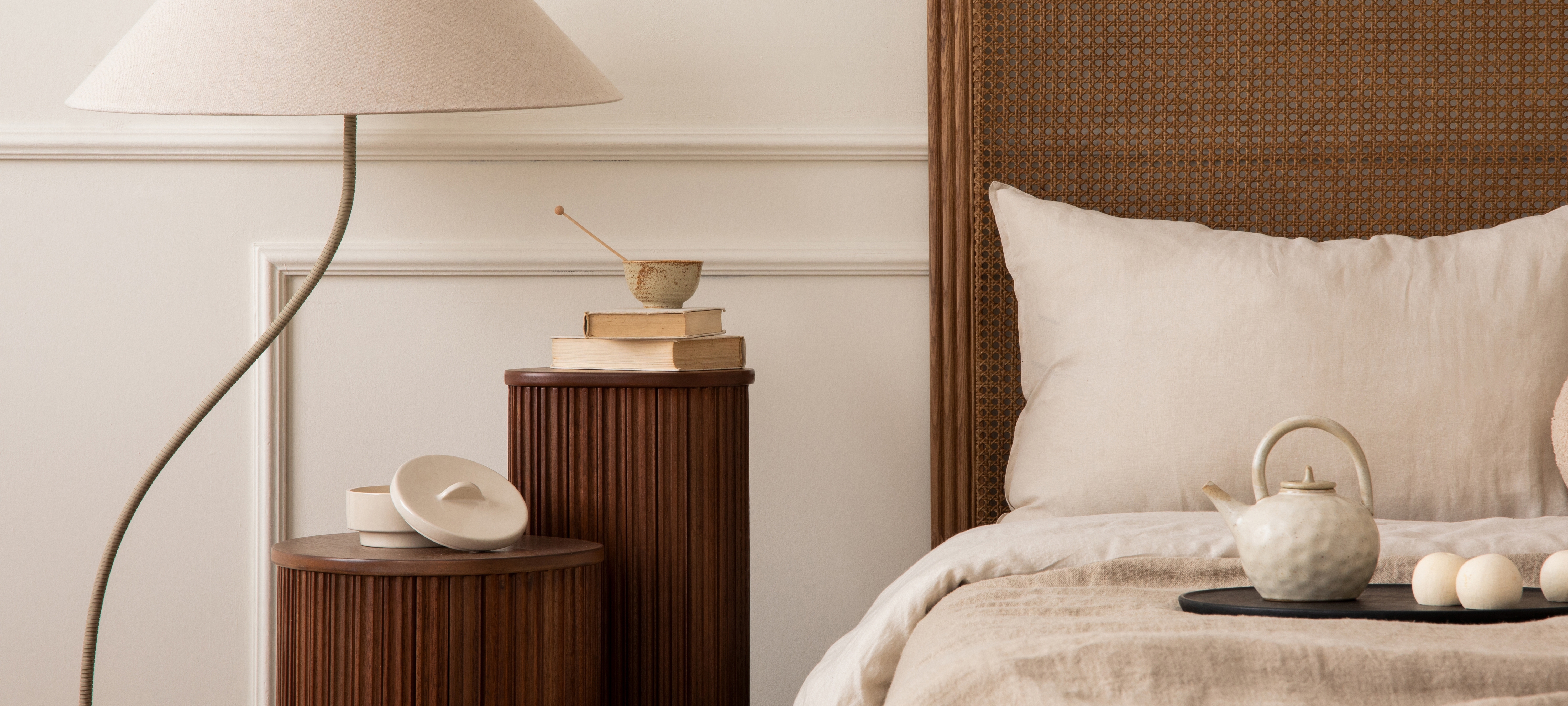 Acoustic panels, made from natural wood, create an earthy, calming feel, perfect for bedrooms and living spaces.